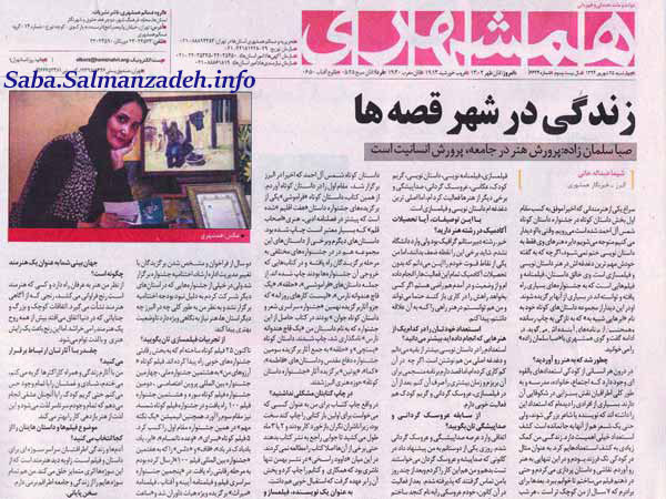 صبا سلمانزاده: از دید من همه جلوههای زندگی نوعی اثر هنری است. بستگی به نگاه و روح افراد دارد که خاص و موشکافانه به خلقتهای طبیعی بنگرند. صبح هنگام تابش نور خورشید در میان شاخههای درخت یک تابلوی هنری جالب است یا صدای پرندهها و گنجشکها خود یک سمفونی جذاب است که هر کسی میتواند با توجه به ذوق هنری خود آن را دریافت کرده و از آن لذت ببرد.